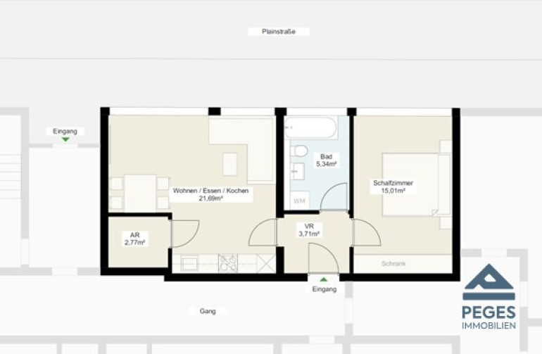 Eben komplett renoviert (inkl. Elektro- und Sanitäreinrichtungen), überzeugt durch ihre geschmackvolle Ausstattung in hellem Design – ein angnehmes Wohnambiente ist garantiert. Vom Vorraum sind der großzügig gestaltete helle Wohn-, Ess- und Kochbereich mit gemütlichem Flair sowie auch das Bad/WC und das gut geschnittene Schlafzimmer begehbar. Das zeitlos-moderne, hell gestaltete Bad ist mit einer Badewanne sowie einem WC (sowie mit eigenem Waschmaschinen-Anschluss) ausgestattet. Ein praktischer Abstellraum neben dem Küchenbereich bietet perfekten Stauraum.