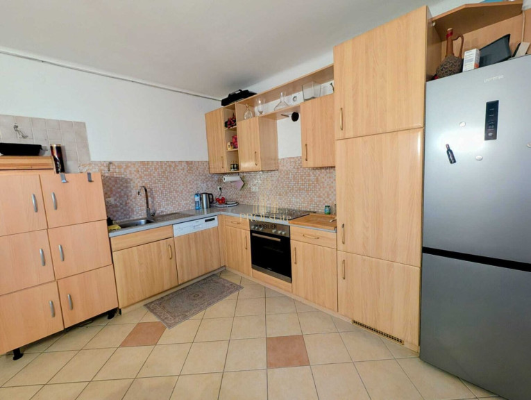 Fliesen, Laminatboden, Zentralheizung, Einbauküche, Bad mit Fenster, Dusche, Parkplatz