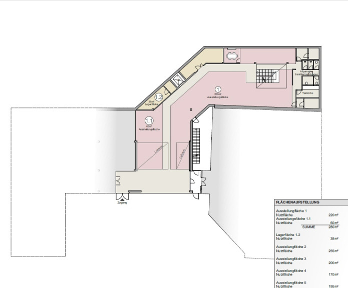 Diese vielseitig nutzbare Ausstellungsfläche befindet sich in einem der dynamischsten Gewerbestandorte des 23. Wiener Bezirks einem Standort, der sich in den letzten Jahren zu einem starken Interior- und Baunebengewerbe-Cluster entwickelt hat. Unternehmen profitieren hier besonders von Sichtbarkeit, einem professionellen Umfeld und wertvollen Synergieeffekten.Die gesamte verfügbare Fläche umfasst ca. 1.350 m² und gliedert sich in ein Erdgeschoss (ca. 323 m²) sowie ein Obergeschoss (ca. 825 m²). Um den Mietern ein optimales Umfeld zu bieten, wurde vom Eigentümer ein variables Shop-in-Shop-Konzept entwickelt, das neue wie bestehende Marken vernetzt und gemeinsame Events sowie Kooperationen ermöglicht. Marken wie Molto Luce, Breitschopf Küchen, Dana Türen und Sedda Polstermöbel schaffen ein etabliertes und hochwertiges Umfeld und dadurch ein ideales Fundament für Unternehmen, die ihre Marke bewusst positionieren möchten.