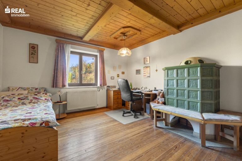 Das Wohnhaus besteht auf 96m² auf der ersten Ebene aus einem großen Vorzimmer, von dem aus man die Küche mit Essgruppe (und Zugang zur ca. 80m² großen Terrasse), ein Gästezimmer, das Bad mit WC und Dusche und einen Vorratsraum erreicht. Zwischen Küche und Gästezimmer sorgt ein Kachelofen für wohlige Wärme. Ein spätere bauliche Abtrennung zur Einliegerwohnung kann einfach wieder hergestellt werden, falls man mehr Platzbedarf benötigt.