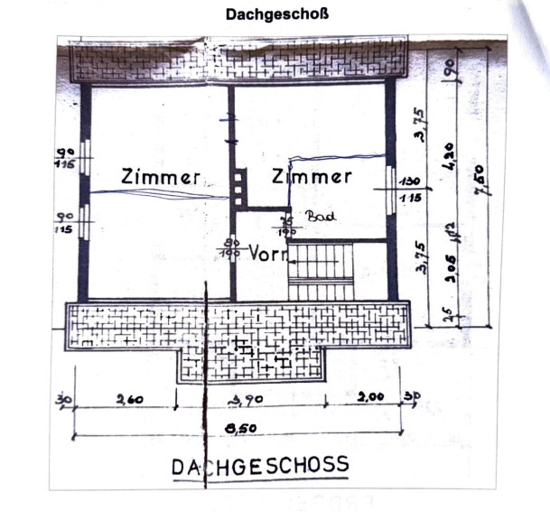 - Vorraum: Verbindungsbereich, der den Zugang zu den Zimmern im Dachgeschoss ermöglicht.
