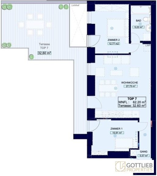 + ca. 27,73 m2 Wohn-Ess-Bereich