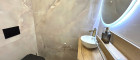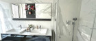 Obergeschoss: Elternschlafzimmer, zwei Kinderzimmer und zwei stilvolle Bäder mit Dusche, Wanne, Doppelwaschtisch und WC – perfekt für Familienkomfort.