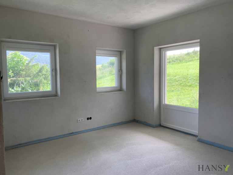 Zum Verkauf gelangt ein neu gebautes, belagsfertiges Einfamilienhaus am Tullnberg (ca. 1.100 m Seehöhe) im Bezirk Tamsweg im wunderschönen Lungau. Da es sich um einen Erstbezug handelt, kann die Fertigstellung nach eigenen Wünschen selbst realisiert werden. Die Immobilie wurde massiv gebaut und hat alle erforderlichen Vorbereitungen für den Ausbau. Darüber hinaus gibt es einen Troadkastn (ca. 50 m²), der voll ausgebaut und bereits bewohnbar ist, und einen Geräteschuppen.