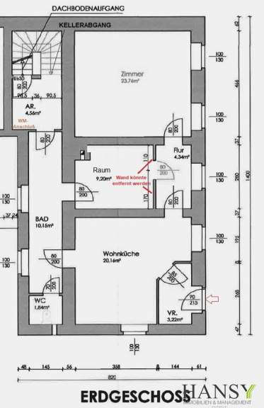 Das Gesamtobjekt ist sanierungsbedürftig, wobei es eignet sich sowohl zum Wohnen als