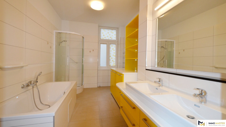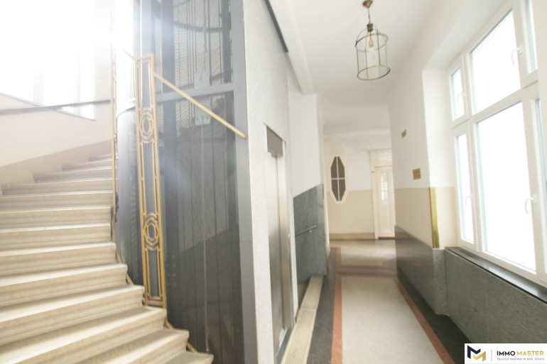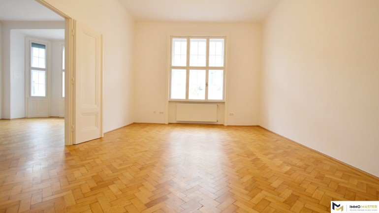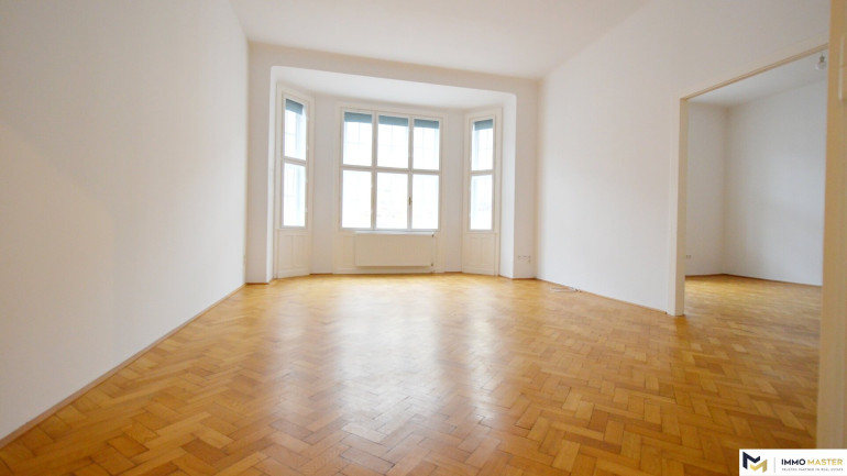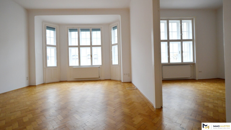 Diese helle, ca. 119 m² große Wohnung befindet sich im 3. Stock (mit Lift) eines sehr gepflegten Altbauhauses.