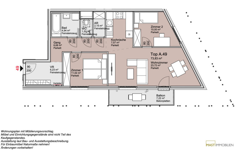 Alle verfügbaren Wohnungen finden Sie auf unserer Homepage unter www.mast-immo.at. Um Ihre Suche zu erleichtern, steht Ihnen auf unserer Projektseite www.anderschanze25.at ein Wohnungsnavigator zur Verfügung, der Ihnen hilft, sich einen Überblick über die Lage der einzelnen Wohnungen innerhalb des Komplexes zu verschaffen.