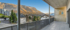 Die Dachgeschosswohnung überzeugt mit einem weitläufigen Wohn Ess Bereich, in dem ein gemütlicher Kaminofen für eine besondere Atmosphäre sorgt. Von hier aus gelangen Sie auf die über 25 m² große überdachte Terrasse, die einen herrlichen Blick auf die umliegende Bergwelt bietet und zu entspannten Stunden im Freien einlädt.