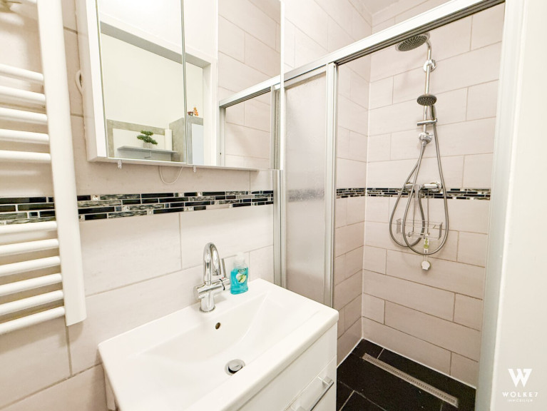 Auf ca. 43,04 m² Wohnfläche erwartet Sie ein helles Wohnzimmer, ein ruhiges Schlafzimmer, eine Einbauküche, sowie ein Badezimmer mit Dusche und WC. Die Kombination aus Laminat- und Fliesenböden, Außenjalousien und modernen Deckenleuchten schafft ein angenehmes Wohngefühl.
