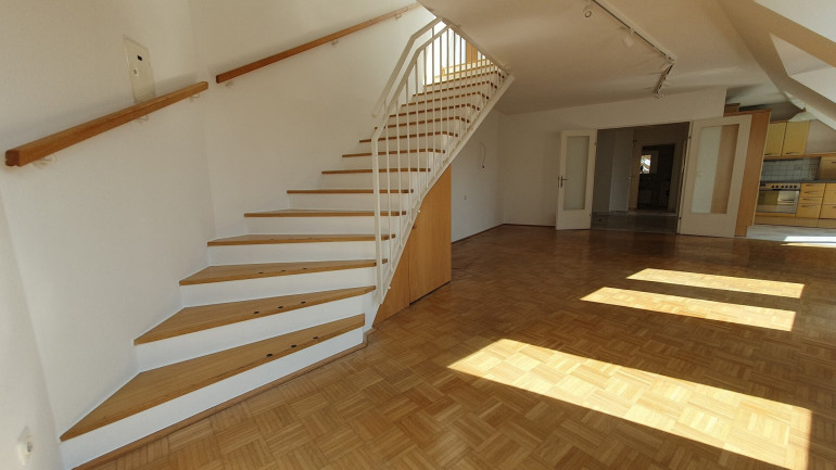 Die Wohnung liegt im obersten Geschoss (DG1 + DG2). Ein großer Personenlift steht zur Verfügung und bringt Sie komfortabel bis vor die Wohnungstür.