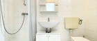 - 1 Badezimmer mit WC, Duschkabine, Waschbecken sowie einem Fenster