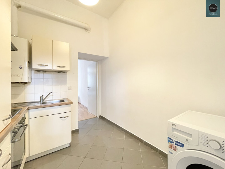 - 1 Küche mit komplett ausgestatteter Einbauküche inkl. aller Geräte sowie einem Waschmaschinenanschluss