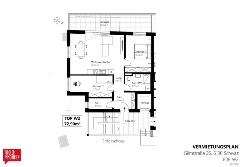 In der Gilmstraße 25 in Schwaz entsteht ein modernes Wohnhaus inkl. Tiefgarage und Lift mit nur fünf Wohneinheiten – perfekt für alle, die ruhiges und modernes Wohnen in attraktiver Aussichtslage schätzen. Alle Wohnungen werden vom Vermieter mit modernen Einbauküchen inkl. E-Geräte, Spiegelschränken im Badezimmer und Deckenlampen in allen Räumen ausgestattet. Jede Wohnung überzeugt unter anderem mit tollen Außenbereichen und eine elektrische Beschattung ist an allen Fenstern vorhanden. Zusätzlichen Stauraum bietet jeder Wohnung ein Kellerabteil.
