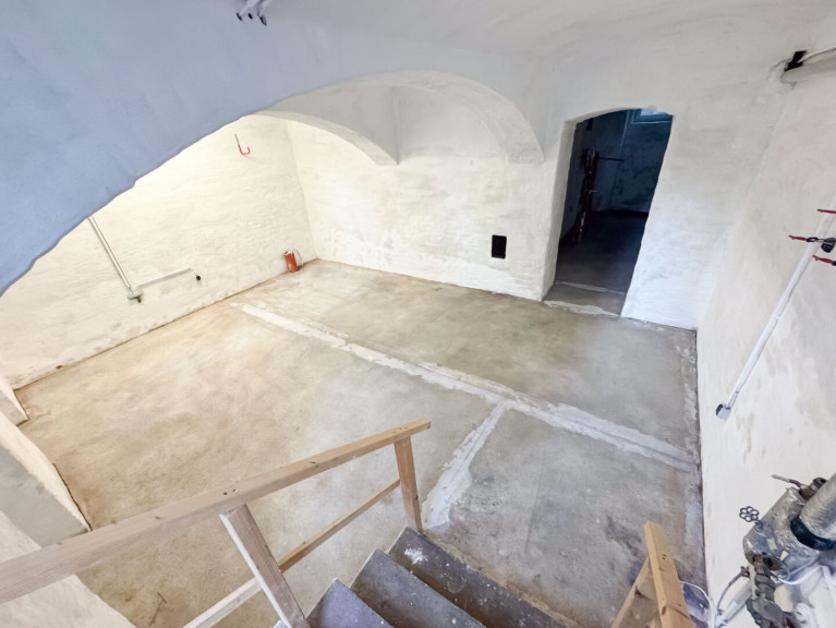 - einem 32 m2 großen Raum mit der Treppe zur Straße