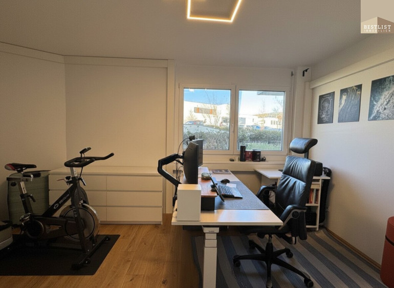 Hochwertige Materialien in allen Räumen, Eichenparkett, Fussbodenheizung und eine integrierte Klimaanlage schaffen ein angenehmes Wohnumfeld zu jeder Jahreszeit.