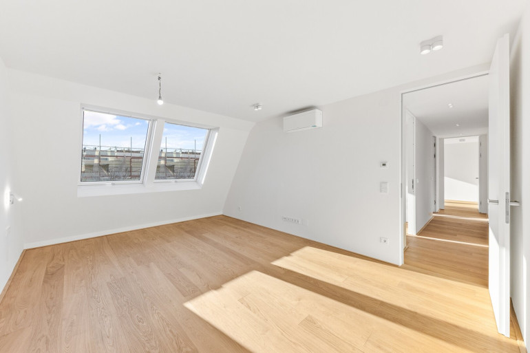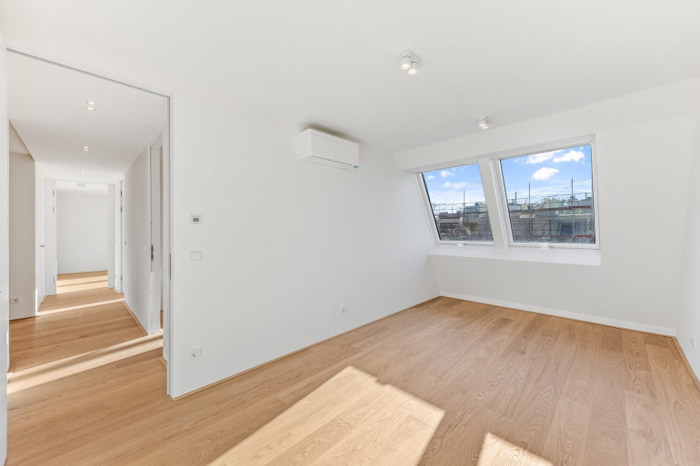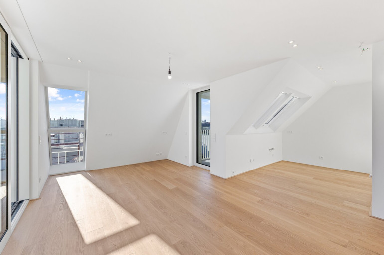 Die Penthouses mit mindestens vier Schlafzimmern und bis zu vier Bädern stellen eine absolute Rarität am Wiener Immobilienmarkt dar. Kaum vorhandene Dachschrägen, lichtdurchflutete Räume und großzügige Dachflächenfenster schaffen ein einzigartiges Wohnambiente.