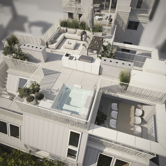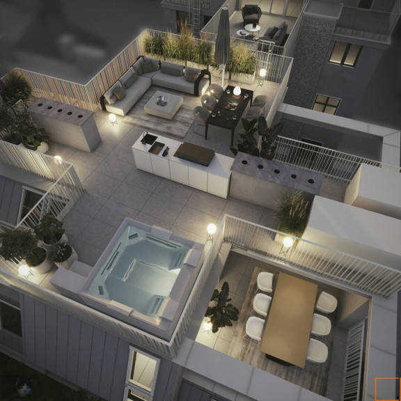 Dieses Penthouse verfügt über ein privates Skydeck (73,23 m²) das den Wohnraum um eine exklusive Terrasse erweitert. Hier erwarten Sie ein beheizbarer Jacuzzi und eine voll ausgestattete Outdoorküche – perfekt für entspannte Abende mit Blick über die Stadt.