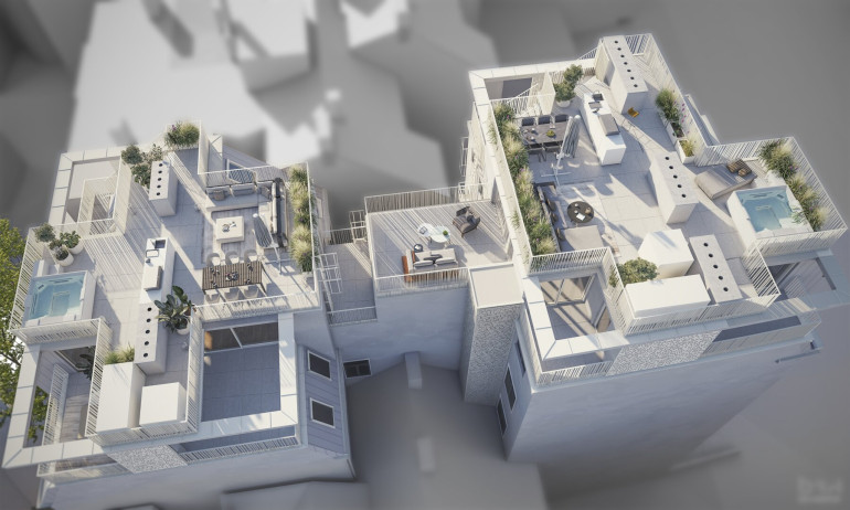 Mit Wohnflächen zwischen 191 und 252 m² bieten diese Residenzen außergewöhnlich viel Platz für anspruchsvolles Wohnen. Ergänzt werden sie durch weitläufige Terrassenflächen von 127 bis 180 m², die den Wohnraum nach außen erweitern und einen exklusiven Rückzugsort über den Dächern der Stadt schaffen.