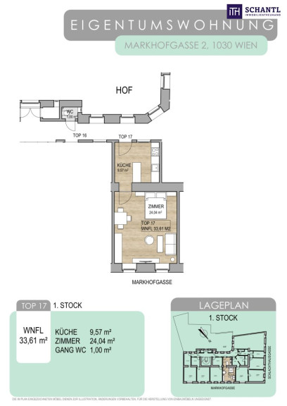 Wohnfläche: ca. 33,67m² + großes Kellerabteil: ca. 6,09m²