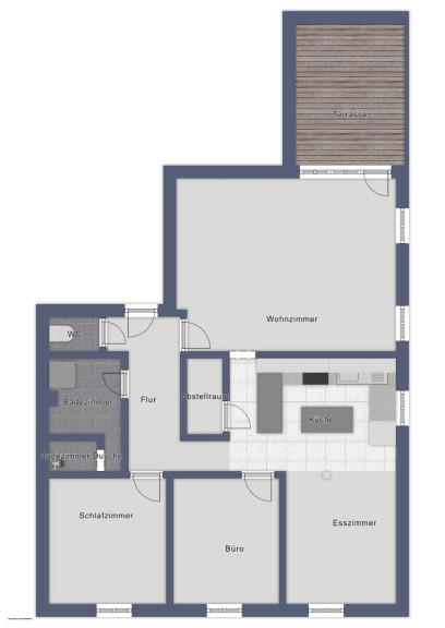 - Zwei Schlafzimmer, ein drittes leicht realisierbar