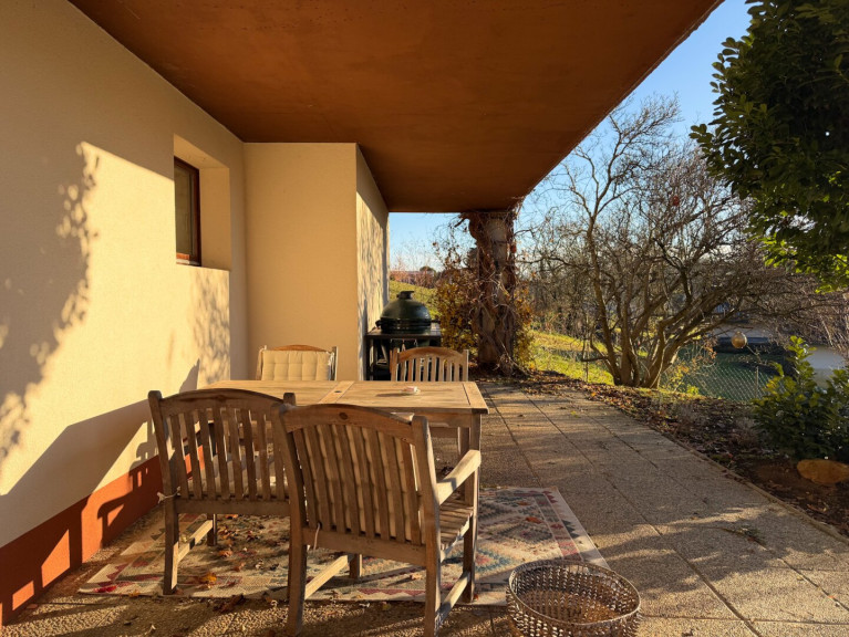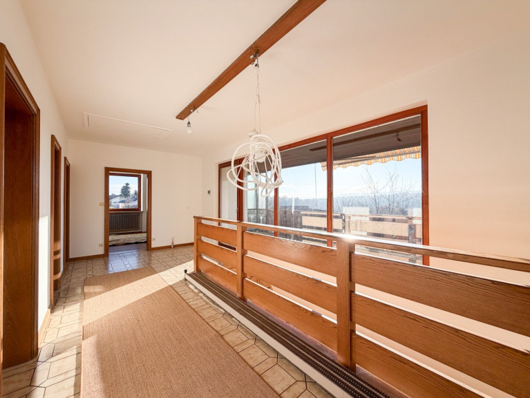 Vier helle Zimmer, die Küche inkl. Abstellraum, das Hauptbadezimmer, das Gäste-WC sowie die große Loggia mit Südwestausrichtung sind im Obergeschoss situiert. Weitere drei Zimmer befinden sich im Untergeschoss, welches zusätzlich über drei Keller- und Technikräume verfügt. Weiters befindet sich auf dieser Ebene eine schöne und überdachten Terrasse im Eingangsbereich.