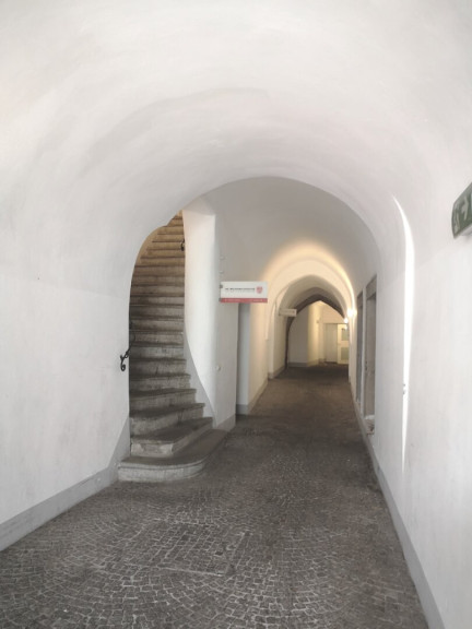 Der Zutritt erfolgt über das historische Stiegenhaus. Im hinteren Bereich des Gebäudes ist auch ein Personenlift verbaut.