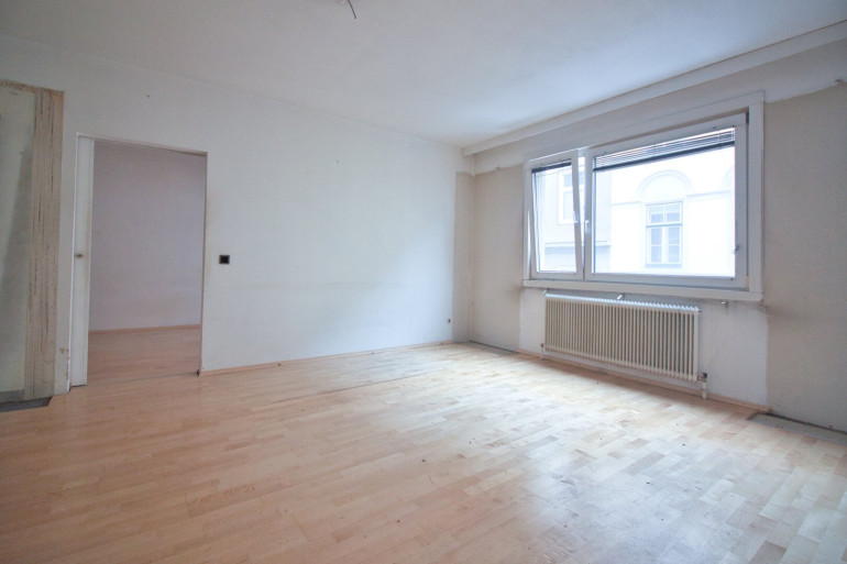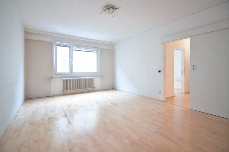 Besonders praktisch: die aktuelle Küche und das kleine Zimmer können auf Wunsch zu einem ca. 15 m² großen Schlafzimmer verbunden werden – im Wohnzimmer könnte man dann eine offene Küche realisieren. So passt sich die Wohnung flexibel Ihren Lebensgewohnheiten und -bedürfnissen an.