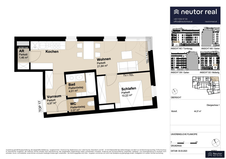 Monatliche Bruttomiete: € 1.090,- inkl. Betriebskosten und gesetzlicher USt.