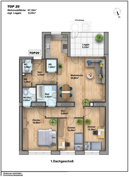 - Top 20: 1. Dachgeschoss; 4 Zimmer; Wfl.: ca. 97,19m²; Loggia: ca. 9,33m²; Kaufpreis: 649.000,-- Euro