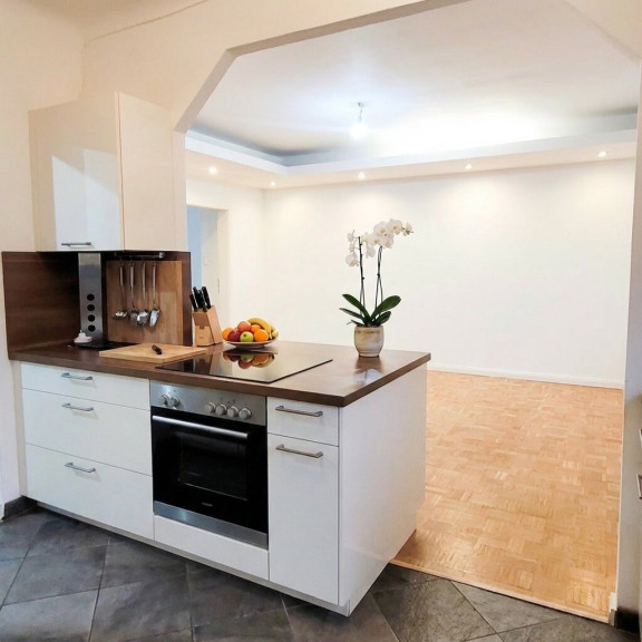 Geräumige 3-Zimmer-Wohnung mit einer moderne offen gestalteten Einbauküche, praktischer Abstellkammer, separater Toilette sowie einem hellen Badezimmer mit Badewanne – ideal für Familien oder Paare, die großzügigen Wohnkomfort schätzen.