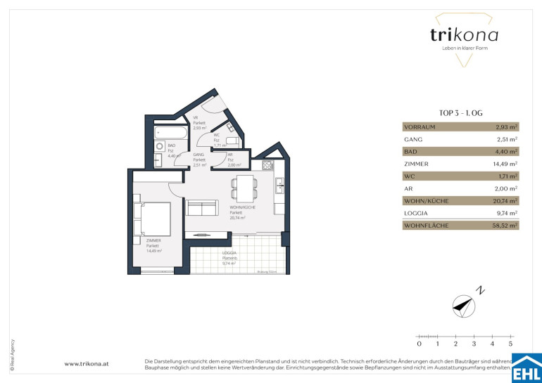 Die hochwertige Ausstattung des Projekts „Trikona“ und die energieeffiziente, innovative Holz-Hybrid-Bauweise spiegeln exzellentes Design und Qualität wider. Zeitlose Unterputzarmaturen der Firma Grohe sorgen für eine elegante Optik und praktische Nutzung. Das Weitzer Echtholzparkett schafft eine warme, natürliche Atmosphäre in den Räumen, während die moderne Smart Home Anlage das Wohnen komfortabel und intelligent macht – von der Steuerung der Beleuchtung bis hin zu Heizung und Sicherheitssystemen. Für Energieeffizienz sorgen eine Wärmepumpe mit Fußbodenheizung sowie eine innovative Kühlung via Roll Over System, die das ganze Jahr über für angenehme Temperaturen sorgt. Hochwertige Feinsteinfliesen im Badezimmer und in der Küche verleihen den Räumen einen eleganten, pflegeleichten Look. Echtholzböden ergänzen das harmonische Gesamtbild und unterstreichen die Qualität der Ausstattung. Besonders hervorzuheben ist, dass alle verwendeten Materialien, Marken und Subunternehmen aus Österreich stammen. Damit wird nicht nur höchste Qualität garantiert, sondern auch die lokale Wirtschaft nachhaltig unterstützt. Diese Kombination aus österreichischer Handwerkskunst, Ästhetik und Funktionalität macht das Wohnerlebnis in „Trikona“ einzigartig.