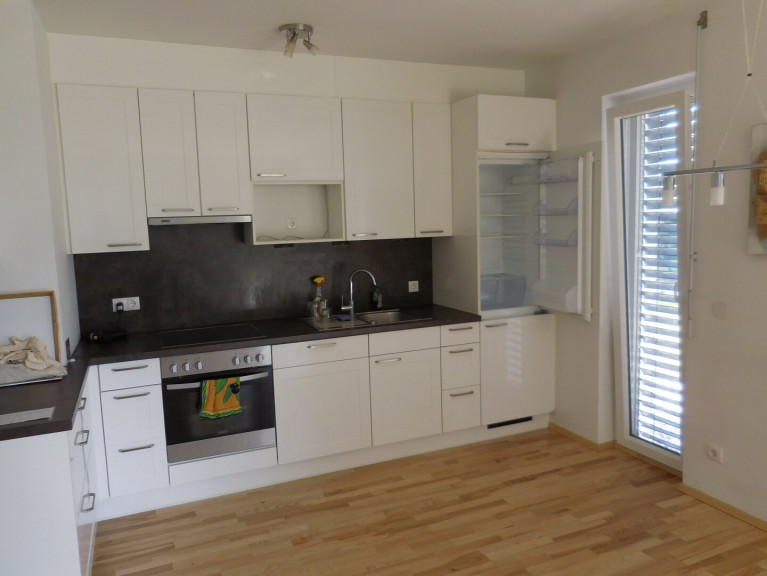 Das Objekt verfügt über 2 Schlafzimmer, einen sehr geräumigen Wohn-/Essbereich mit ca. 30 m², die Küche ist im klassischem Weiß gehalten.