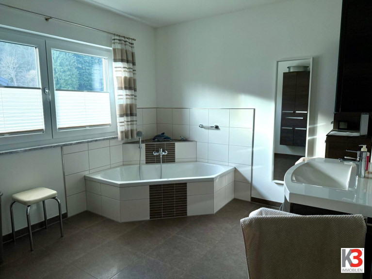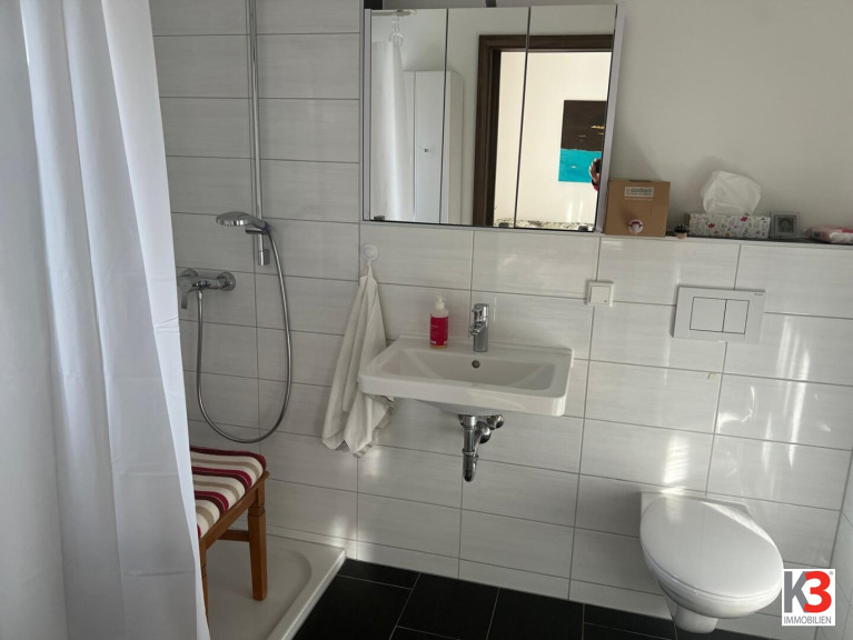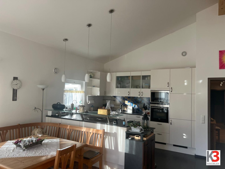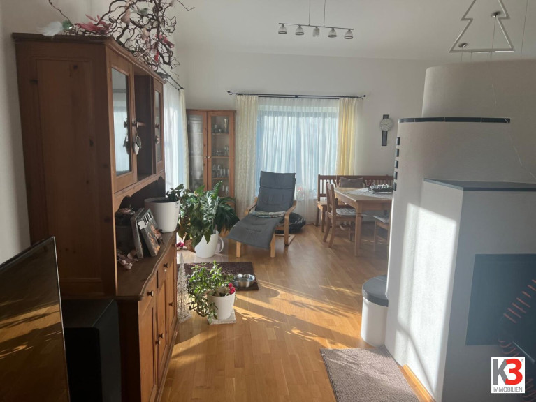 Parkett, Fliesen, Fußbodenheizung, Heizofen, Einbauküche, Südbalkon, Bad mit Fenster, Badewanne, Dusche, Carport, Parkplatz
