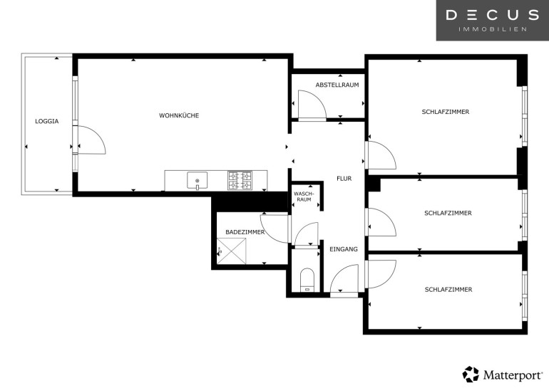 Besonders praktisch: Ein großzügiger Abstellraum sowie ein eigener Bereich für Waschmaschine und Trockner bieten zusätzlichen Stauraum und Komfort.