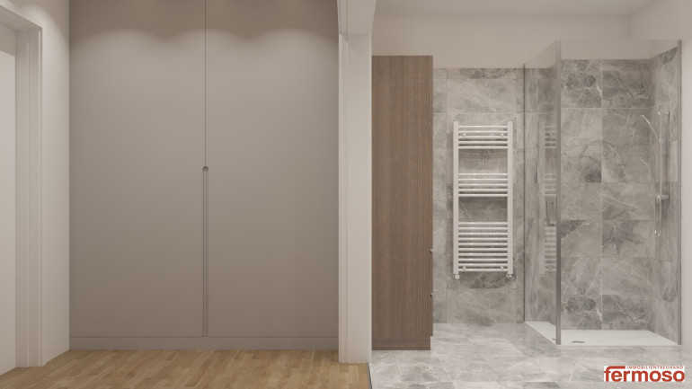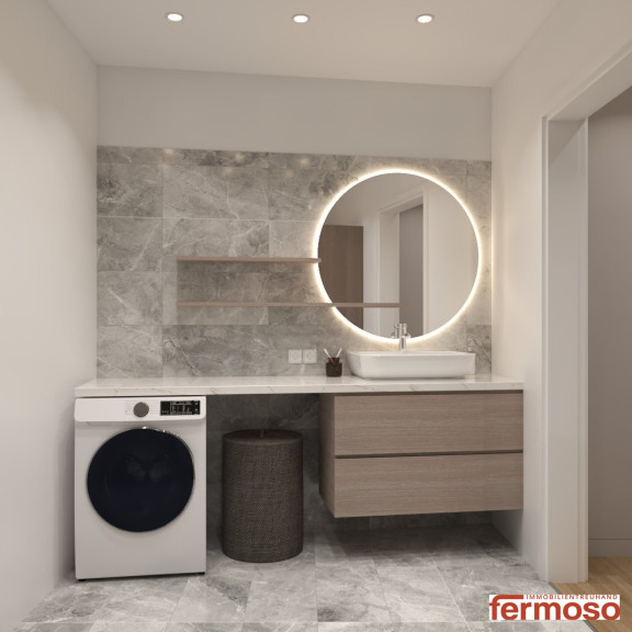 Großformatige Feinsteinzeugfliesen in Bad, WC, Vorraum