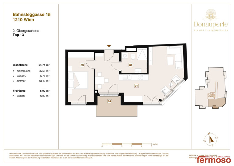 Im hochwertigen Neubauprojekt „Donau Perle“ in der Bahnsteggasse 15 erwartet Sie eine durchdacht geplante 2-Zimmer-Wohnung mit idealer Raumaufteilung und moderner Ausstattung. Diese charmante Einheit überzeugt durch ihre helle Wohnküche, den komfortablen Balkon und ein stimmiges Wohnkonzept – perfekt für Singles, Paare oder Anleger.