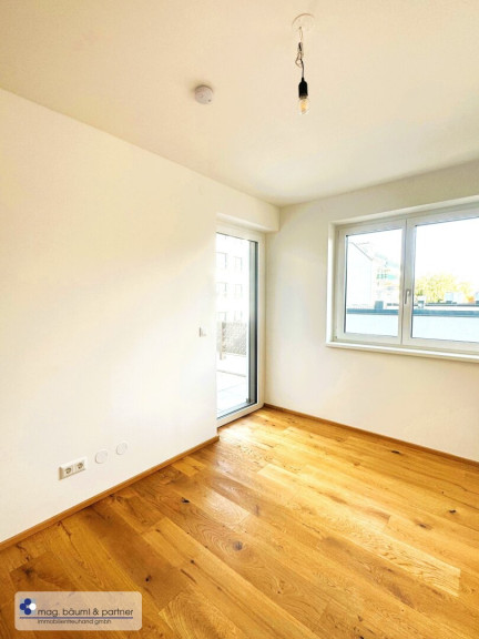Diese Wohnung ist mit hochwertigen Materialien ausgestattet: Die Fenster sind dreifach verglast mit elektrisch gesteuerter Beschattung (Raffstore). Die Böden im Nassbereich sind mit Feinsteinzeugfliesen in Großformat 60x60 (Boden) ausgestattet. Im Wohnbereich finden Sie Echtholz Parkett, gefasst, geölt und gebürstet vor.