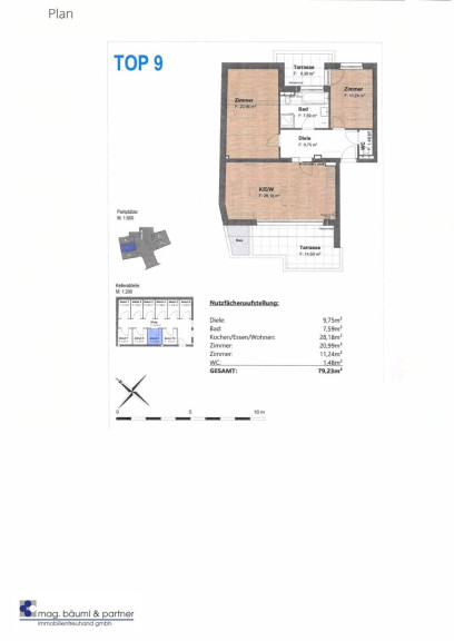 Top 10: ca 78m² - ca 22m² Balkone- 3 Zimmer- Bauzins mtl. € 275,00
