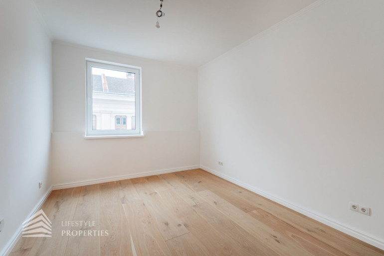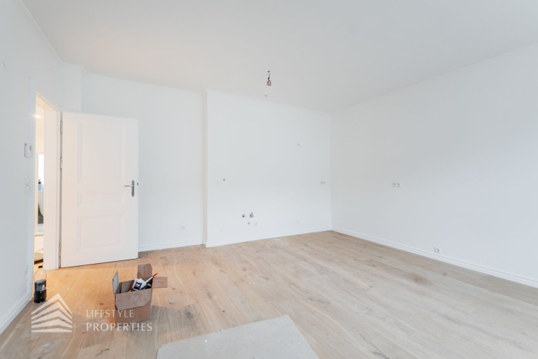 Die entzückende Wohnung mit ca. 56 m² ist ein Erstbezug und befindet sich, bequem über einen Aufzug erreichbar, im 1. DG eines um die Jahrhundertwende errichteten Stilaltbaus in einer gefragten Wohngegend des 4. Wiener Gemeindebezirks. Die elegante Gründerzeitfassade sowie auch sämtliche Allgemeinflächen des Hauses wurden mit viel Liebe zum Detail renoviert. Das Eckzinshaus verfügt über 3 Regelgeschosse und einem ausgebauten Dachgeschoss. Die Wohnung gliedert sich in einen Vorraum, eine Wohnküche, ein Schlafzimmer, ein Bad und ein WC.
