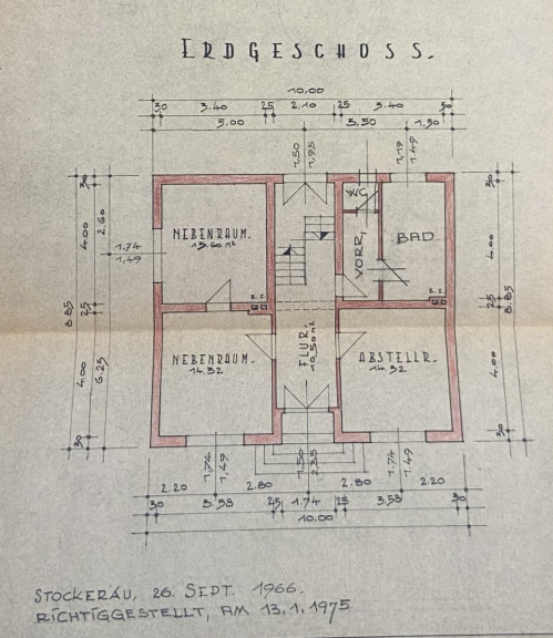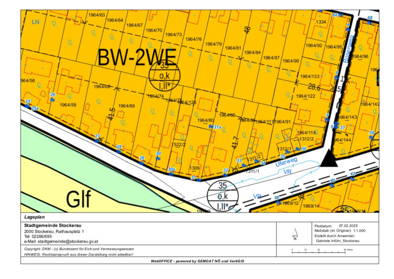 Zum Verkauf gelangt ein ca.1.206 qm großes Grundstück mit einem renovierungsbedürftigen Haus, einer Garage und einem kleinen Blockhaus. Die Flächenwidmung sieht eine Bebauung von 30% in offener oder gekuppelter Bauweise der Bauklasse I und II vor, wobei ein zurückgerücktes Aufstocken nicht erlaubt ist. Das Haus aus dem Jahre 1972 ist renovierungsbedürftig und verfügt über 6 Zimmer auf zwei Ebenen mit einer Nutzfläche von ca. 132 qm. Wasser-, Kanal-, Gas- und Elektroanschlüsse sind vorhanden. Beheizt wird mittels Gastherme und Radiatoren.