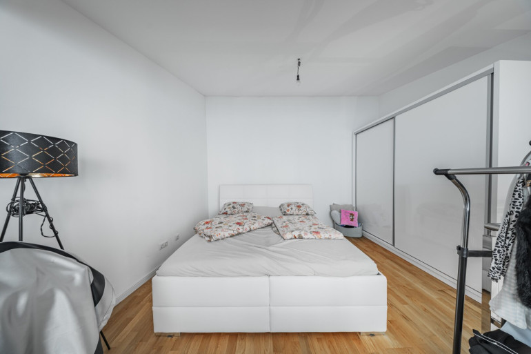 Das Schlafzimmer dient als ruhiger Rückzugsort, während die offene Galerieebene im Obergeschoss – aktuell ebenfalls als Schlafzimmer genutzt – vielseitige Möglichkeiten eröffnet, etwa als Arbeitsbereich, Gästezone oder Ankleide.