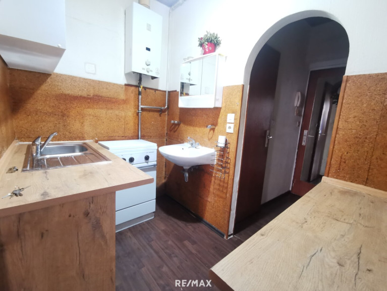 1 Zimmer mit Singleküche, Dusche und WC. Renovieren / sanieren oder auch so einziehen möglich und fertig.