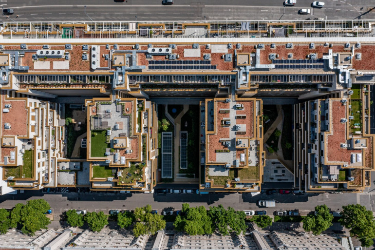 Dadurch bietet sich den Hausbewohnern eine Vielzahl an Erholungsmöglichkeiten außerhalb der eigenen vier Wände. Sei es auf einer der Dachterrassen mit einem unvergleichbaren Blick über Wien oder in einem der begrünten Innenhöfe.