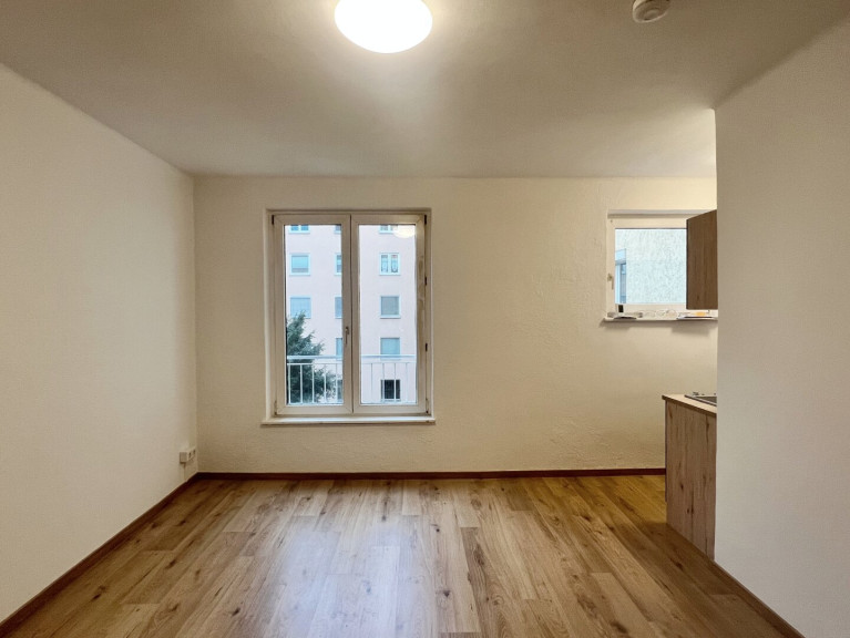 Die harmonische Farbgebung und die frische Sanierung vermitteln ein Gefühl von Leichtigkeit und Modernität. Eine kompakte Küchenzeile bietet alles, was man für das tägliche Kochen benötigt, und fügt sich formschön in den Raum ein. Durch die intelligente Platznutzung bleibt ausreichend Wohnfläche für Schlafen, Wohnen und Arbeiten. Das Badezimmer ist funktional ausgestattet – mit Dusche, Waschbecken und WC. Es bietet eine solide Basis und kann jederzeit nach eigenen Vorstellungen modernisiert werden