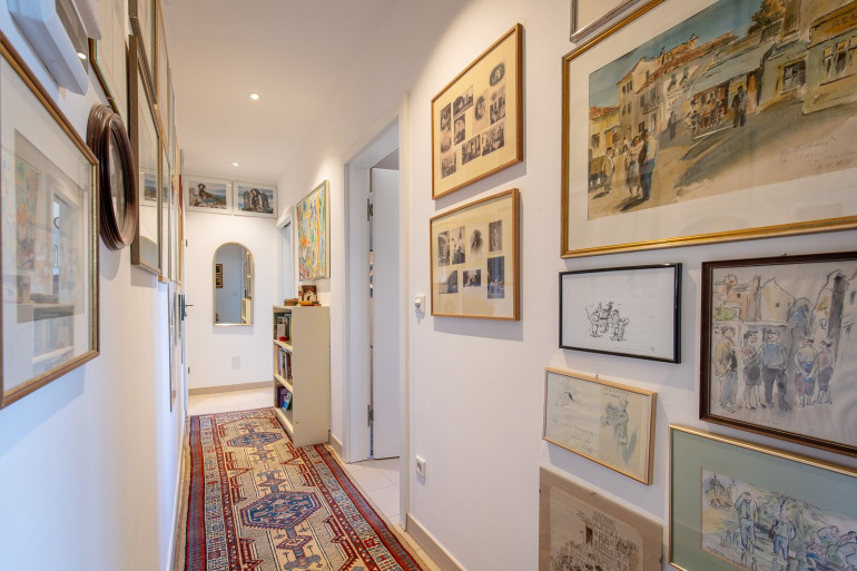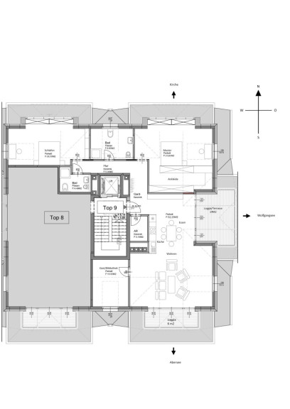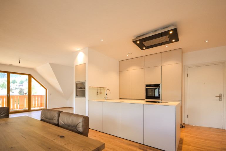 Die zeitlose, elegant ausgestattete Wohnung beeindruckt mit ihrem großzügigen Grundriss: über 50m² großem Wohn- u. Speisezimmer mit integrierter, offener Küche, sowie 27m² großem Master-Bedroom. Ebenso gelangt man vom Wohnzimmer zu einer 14m² großen, komplett überdachten Loggia, die somit auch an warmen Sommerregentagen genutzt werden kann. Weiters gibt es nach Süden einen 6m² großen, ebenfalls überdachten Balkon mit schönem Seeblick. Zwischen den beiden Hauptschlafzimmern liegt das große Master-Bad mit WC und schönem Blick zur Kirche, gegenüber ein Gästebad mit WC und Dusche. Vom großen Wohnzimmer begehbar besteht ein nach Süden orientiertes Arbeits- oder Gästezimmer. Die Wohnung ist damit sowohl für einen großzügigen 2-Personenhaushalt sowie mit ihren drei geräumigen Schlafzimmern und zwei Bädern ebenso für eine Familie geeignet. In allen Räumen wurde hochwertiger Eichenparkettboden verlegt, die Küche mit Miele-Geräten vom Tischler eingebaut. Weiters verfügt die Wohnung über umfangreiche maßgefertigte Einbauten, die verbleiben und im Kaufpreis inkludiert sind. Die Sanitärgegenstände stammen von Villeroy & Boch, die Waschtische in den Bädern verfügen über Marmoroberflächen. Das im Erdgeschoss des Hauses gelegene Kellerabteil sowie der zur Wohnung gehörende Parkplatz vor dem Haus und der obere Stellplatz in der funkgesteuerten Doppelparker-Garage erlauben ein komfortables Wohnen.