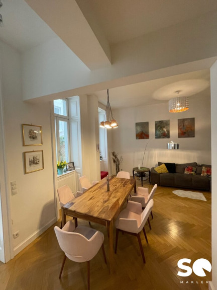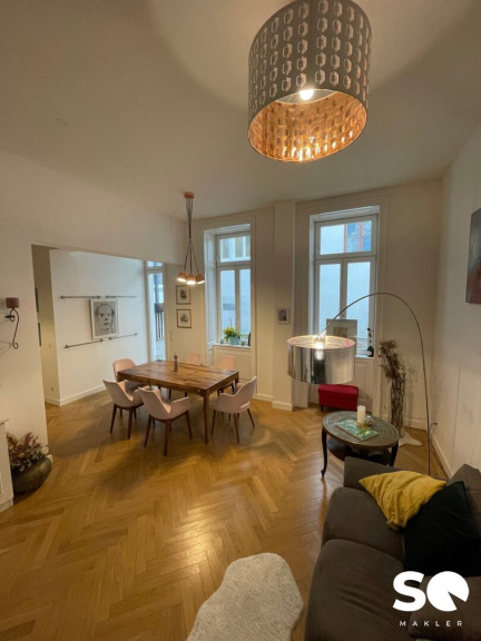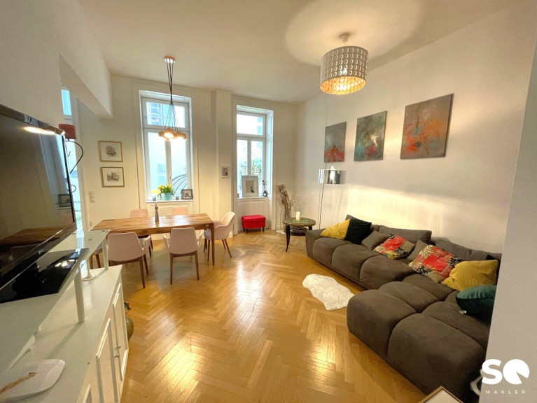 Diese ca. 87 m² große Maisonette bietet die Exklusivität durch einen eigenen straßenseitigen Eingang und besticht durch eine intelligente Aufteilung und den besonderen Charme eines revitalisierten Altbaus. Mit einer lichten Raumhöhe, zwei getrennt begehbaren Schlafzimmern und einer großzügigen Terrasse in Hofruhelage bietet sie höchsten Wohnkomfort. Moderne Technik und hochwertige Ausstattung, wie doppelt verglaste Isolierfenster, Fussbodenheizung im Erdgeschoss und Holzparkettböden, runden das Angebot ab.