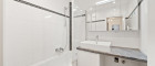 Das Badezimmer verfügt über eine Badewanne – ideal, um nach einem langen Tag zur Ruhe zu kommen.