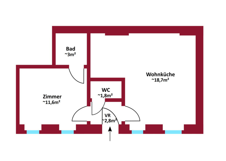 Auf ca. 42m² erstreckt sich die folgende Raumaufteilung: