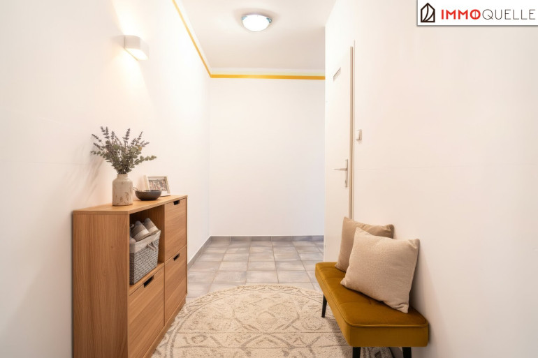 Bereits beim Eintreten empfängt Sie ein einladender Vorraum, der nicht nur als klassischer Eingangsbereich fungiert, sondern geschickt die Funktionen der Wohnung zoniert. Rechter Hand befindet sich das modernisierte Badezimmer - kompakt, aber funktional - sowie ein separates WC. Daneben: ein praktischer Abstellraum mit Waschmaschinenanschluss, ideal für den Alltag.