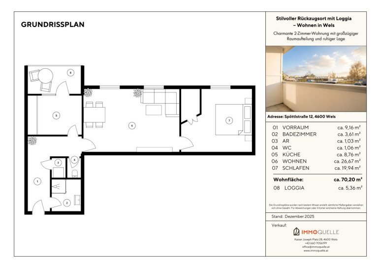 Willkommen in Ihrem neuen Zuhause - einer gepflegten Eigentumswohnung in angenehmer Nachbarschaft, die sowohl durch ihre durchdachte Raumgestaltung als auch durch ihre ruhige, stadtnahe Lage überzeugt. Ob für Singles, Paare oder ruhesuchende Senioren: Diese 70 m² große Wohnung in der Spöttlstraße 12 in Wels bietet ein komfortables Wohngefühl und viel Platz für individuelle Entfaltung.